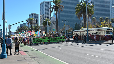 On the eve of COP 26’s conclusion in Glasgow, over 300 rebels marched along San Francisco’s Embarcadero roadway to demand that global leaders declare a climate emergency. We marched in solidarity with the tens of thousands of activists who have spent the last two weeks demonstrating in Glasgow, making our call for Climate Justice impossible to ignore.