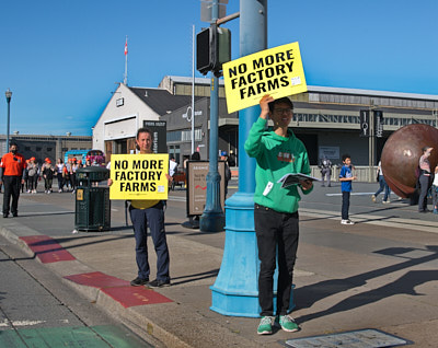 Activists assembled at the Ferry Building to the sounds of the Bay Area’s Musician Action Group. The group then united with a silent meditation before joining in calls to “look” at the problems of the world, “listen” to the truth of who is responsible and “decide” to take action.